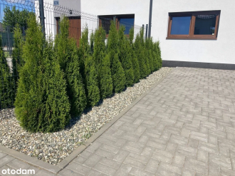 Dom otoczony jest zadbanym ogrodem z miejscem na grilla i strefą wypoczynkową. Przestrzeń na zewnątrz idealnie nadaje się do organizacji rodzinnych spotkań czy letnich wieczorów z przyjaciółmi. Dodatkowo, w ogrodzie znajduje się mały sad z drzewkami owocowymi.